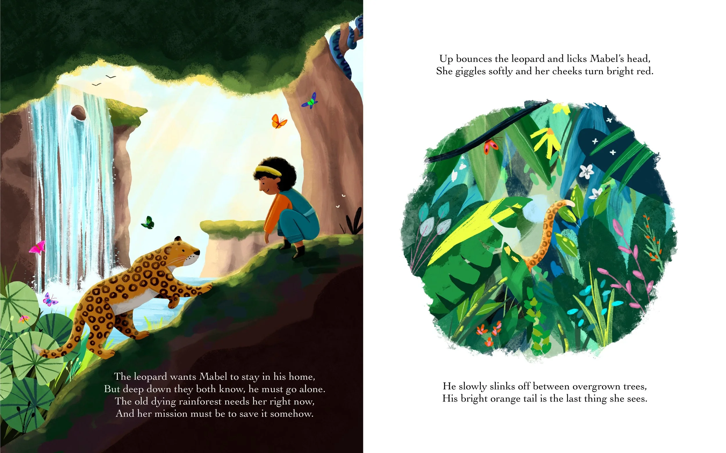 A concept I developed for my dream book. A story with an environmental message about a girl and her dog who find a leopard looking for a home.