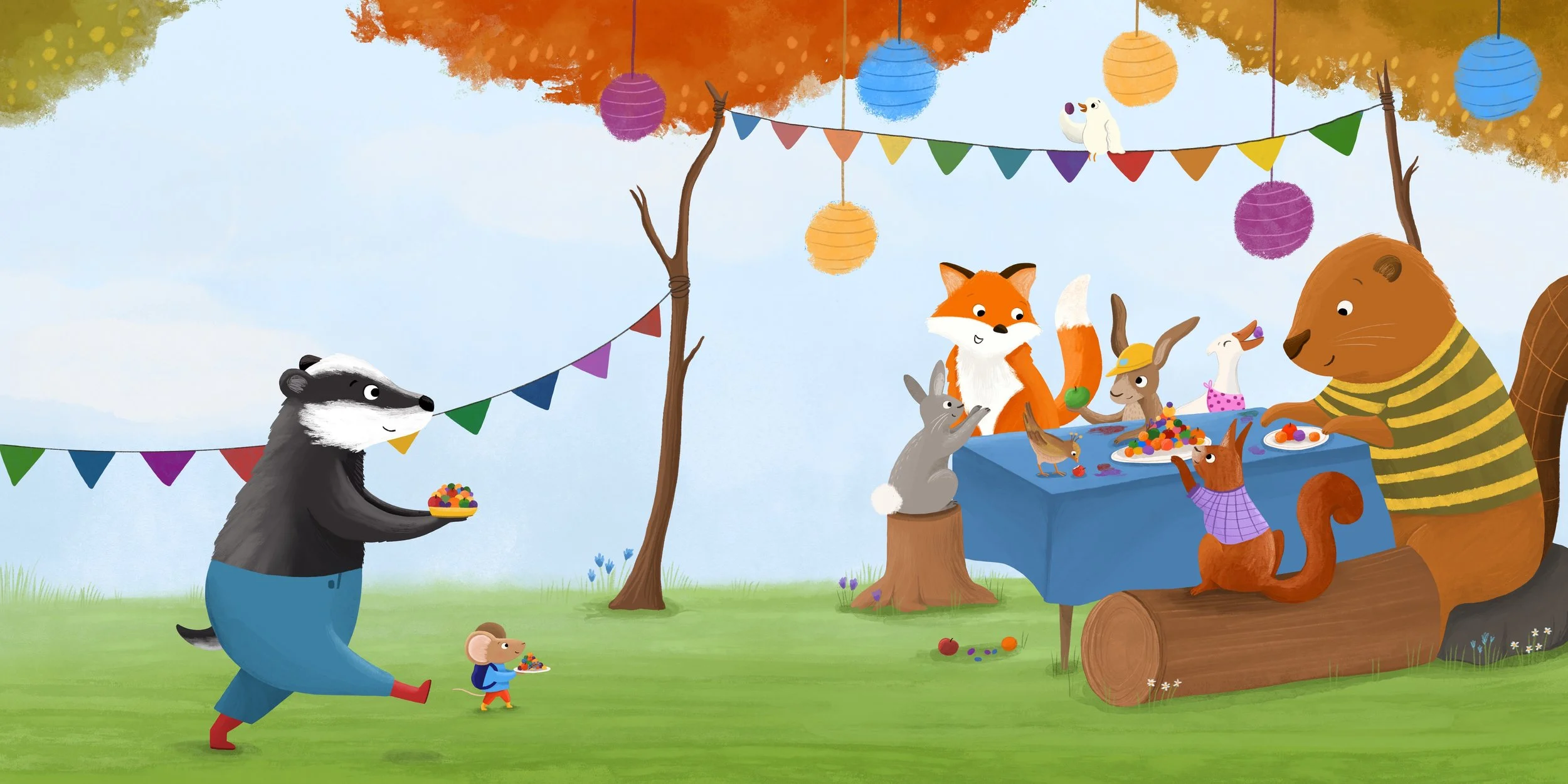 Faced with challenges along the way, Teeny discovers that only by working together with her friends, who all have their own unique talents, will they all reach the fruitiest tree and enjoy a feast together.