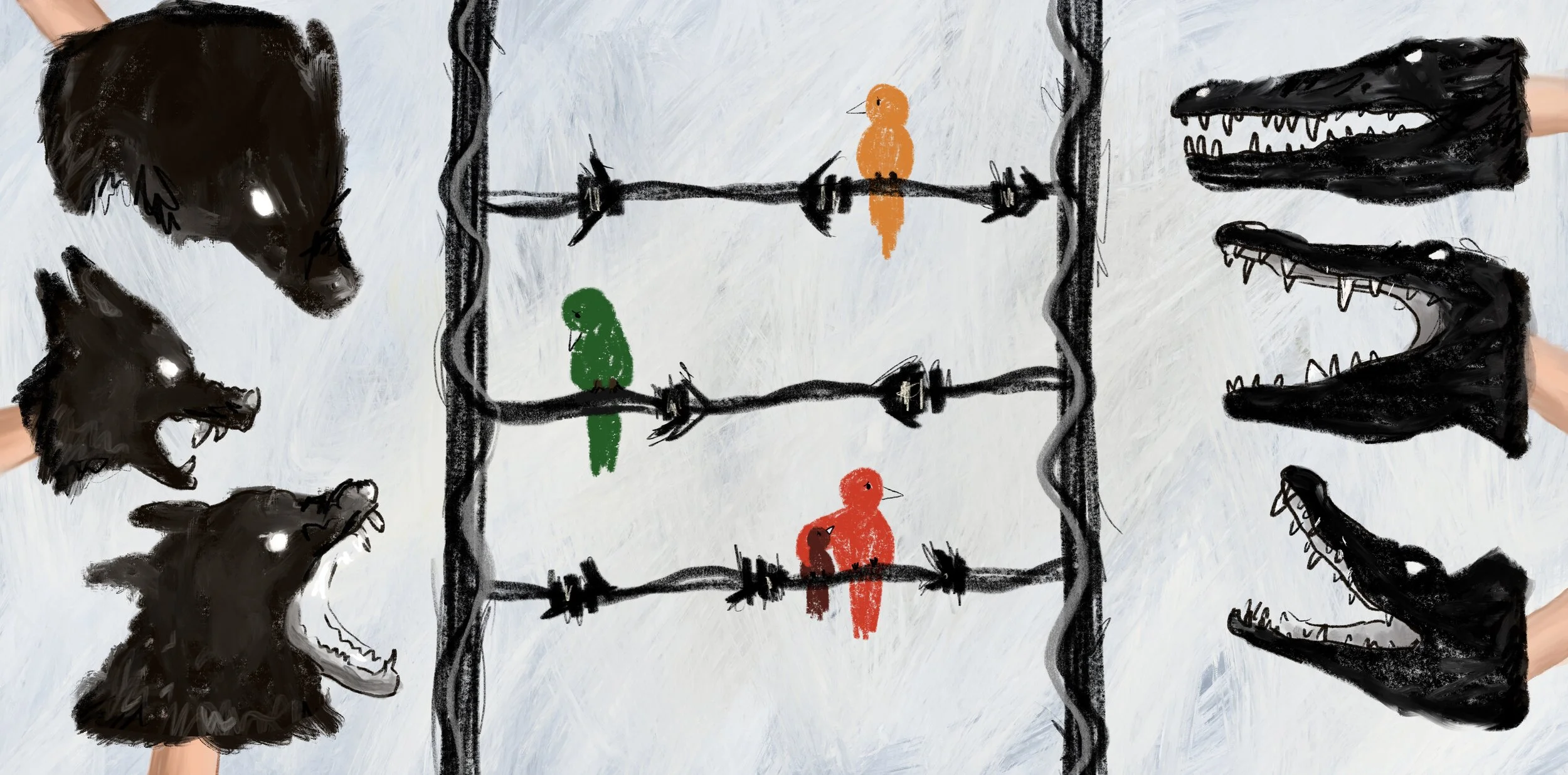 An article in the BBC states: ‘Often the former (an expat) is used to describe educated, rich professionals working abroad, while those in less privileged positions — for example, a maid in the Gulf states or a construction worker in Asia — are deemed foreign workers or migrant workers.’ So it comes down to the simple fact of race, wealth and position. Truly shocked by this I looked further into the true horrific journeys’ immigrants take to just live a better life while white, middle to upper classed people can hop from country to country pretty easily. The true extent of it came when I moved to Mexico, I myself identify as the latter a white and privileged person. I could easily move to Mexico, I met people like me who even had work and their visas just kept being extended. On the other hand people were risking their lives via ‘The Beast Train’ to leave Mexico and find a safer more financially secure home in America. This book is based around real peoples stories with real situations, each figure represents a country and what the people of that country face while crossing boarders. I hope this book, like it did for me, reminds us that we are all living amongst immigrants and migrants some risking everything just to be ignored.